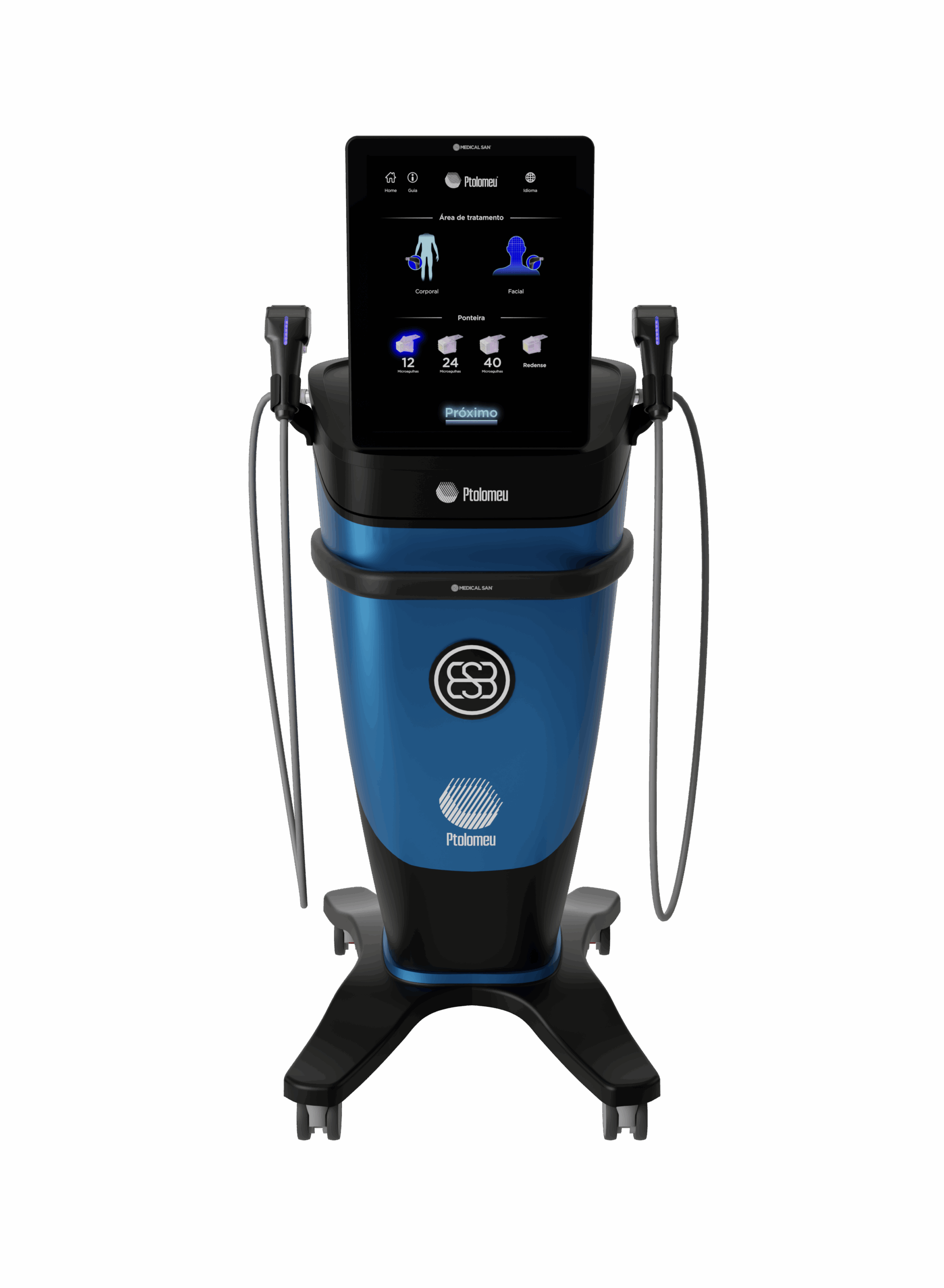 O Ptolomeu é um sistema robótico de microagulhamento com microagulhas de ouro, combinadas à energia de radiofrequência fracionada. Ele induz perfurações percutâneas controladas, liberando RF diretamente na derme profunda, estimulando colágeno, remodelando tecido e redefinindo textura da pele com precisão e segurança.